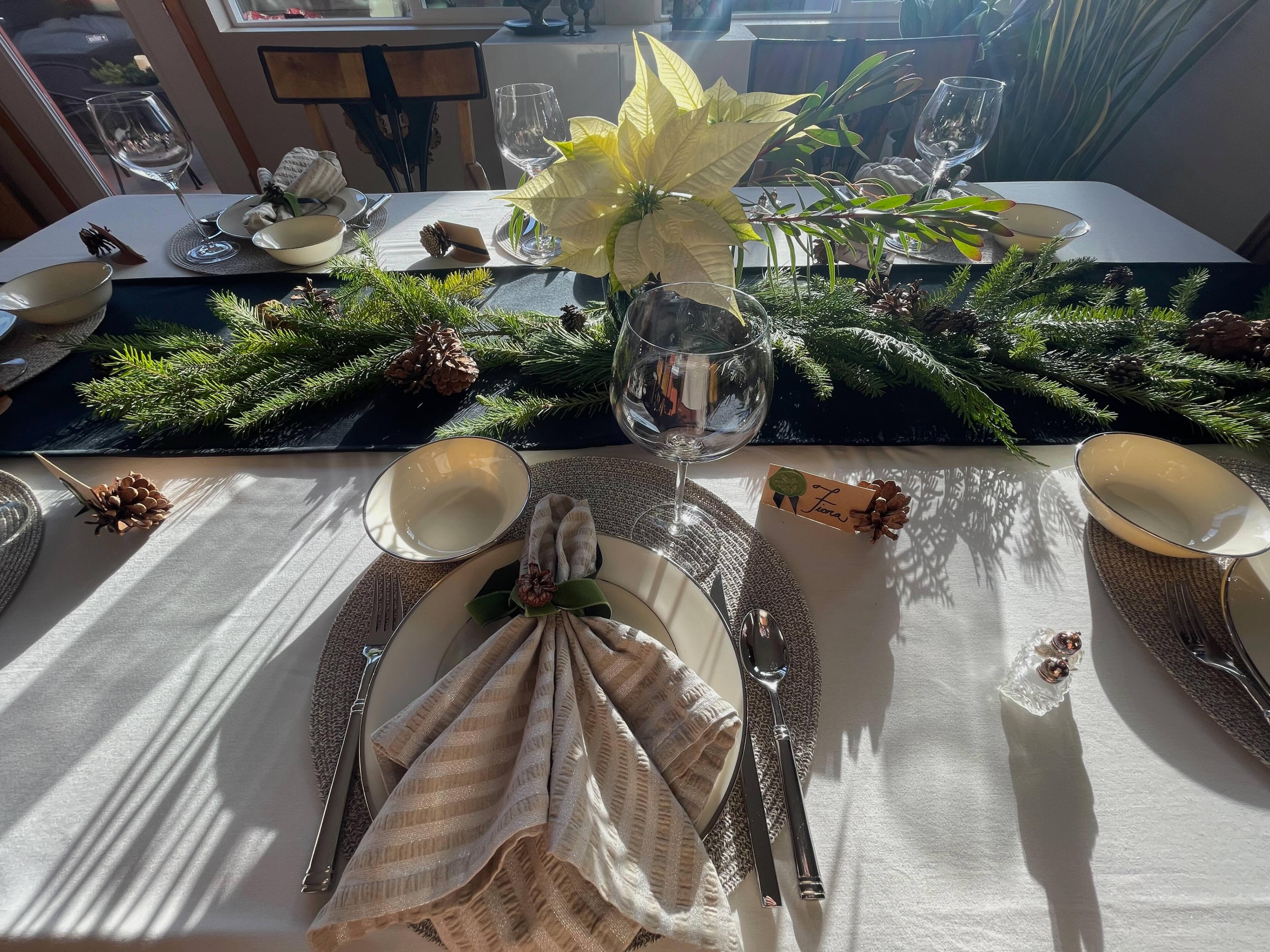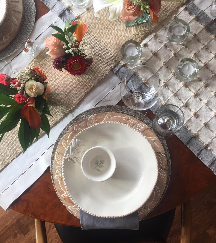 Even the simplest table can become something memorable with thoughtful composition.Tableaux & Co. can design a complete tablescape using the dishes, glassware, and serving pieces you already own—arranging them with linens, florals, and carefully chosen details to create a cohesive and beautiful table.